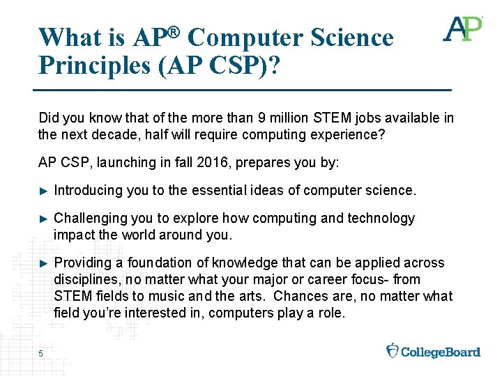 College Confidentials Dean Sally Rubenstone knows the competitive and often convoluted college admissions process inside out. Review the released free-response questions. Of course you need to know much about how computers work and how to read the code statements they provide but AP CSPs content is probably very easy to master.