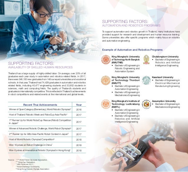 Regarding the form of training most of the companies prefer to send their employees to seminars at training centres in universities during non-working hours as well as to. The size of Thailands shipments of industrial robots is estimated to increase by 133 per cent from 2131 units in 2013 to 7500 units in 2018 according to Duangjai Asawachintachit Secretary General of Thailand Board of Investment BOI. By transforming learning ecosystem to purposeful learning generative learning mindful learning and result-based learning.